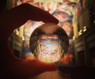 水晶玉、ガラス玉、それぞれを通して景色を見た時にも違いが分かります。ガラスは全体的に平板に見え、像もゆがんで見えるのに対し、水晶では玉の内部に奥行きが感じられ、光が中心に集まるように見えます。